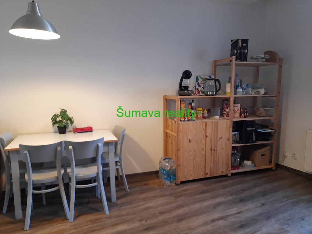 Vybavení: kuchyně - kuchyňská linka, elektrický sporák se sklokeramickou deskou a troubou zn. Gorenje, nerez digestoř Whirpool, nerez dřez, baterie, led světlo, nerezová dvojitá garnýž, jídelní stůl + 4 židle, 2x závěsné lampové světlo s úspornými žárovkami, 1x radiátor