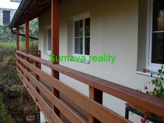 Dispozice: ze vstupní chodby vstup do koupelny se sprchovým koutem, umyvadlem a WC. Dále ze vstupní chodby vstup do velkého obývacího prostoru spojeného s menší kuchyňkou a z obývacího prostoru vstup do ložnice. Okna plastová, podlaha lino a dlažba, topení ústřední, obložky a dveře z masívu. Slunnou pavlač lze využívat k sezení a pěstování okrasných květin. Po domluvě možno pěstovat zeleninu na záhonech v zahradě.